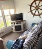 One of three two bedroom, two story beach cabins at Happy Camp, Nautical Star is the perfect place to getaway. The living room, fully stocked kitchen and bathroom are downstairs. Both bedrooms are located upstairs with ocean facing windows. Soak up the sun on the outdoor deck or walk barefoot on the beach in front of your rental. Whatever you do, with the beach at your doorstep, you can never go wrong!